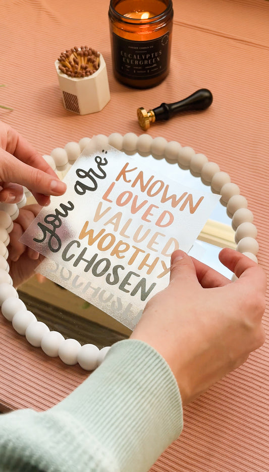 You are known, loved, valued, worthy, chosen | Mirror Decal