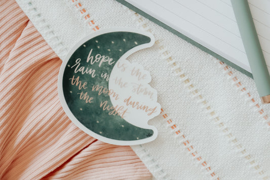 "Hope is the rain in the storm..." 3 x 3 handlettered sticker