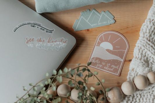 "See the beauty in everyday" 3 x 3 handlettered clear sticker
